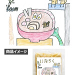 毎年制作しているいなちく。この表の絵は、6年生のラベル係というところが作っているのです。それに加え、絵と裏にある成分表を貼るのも6年生がやっています。